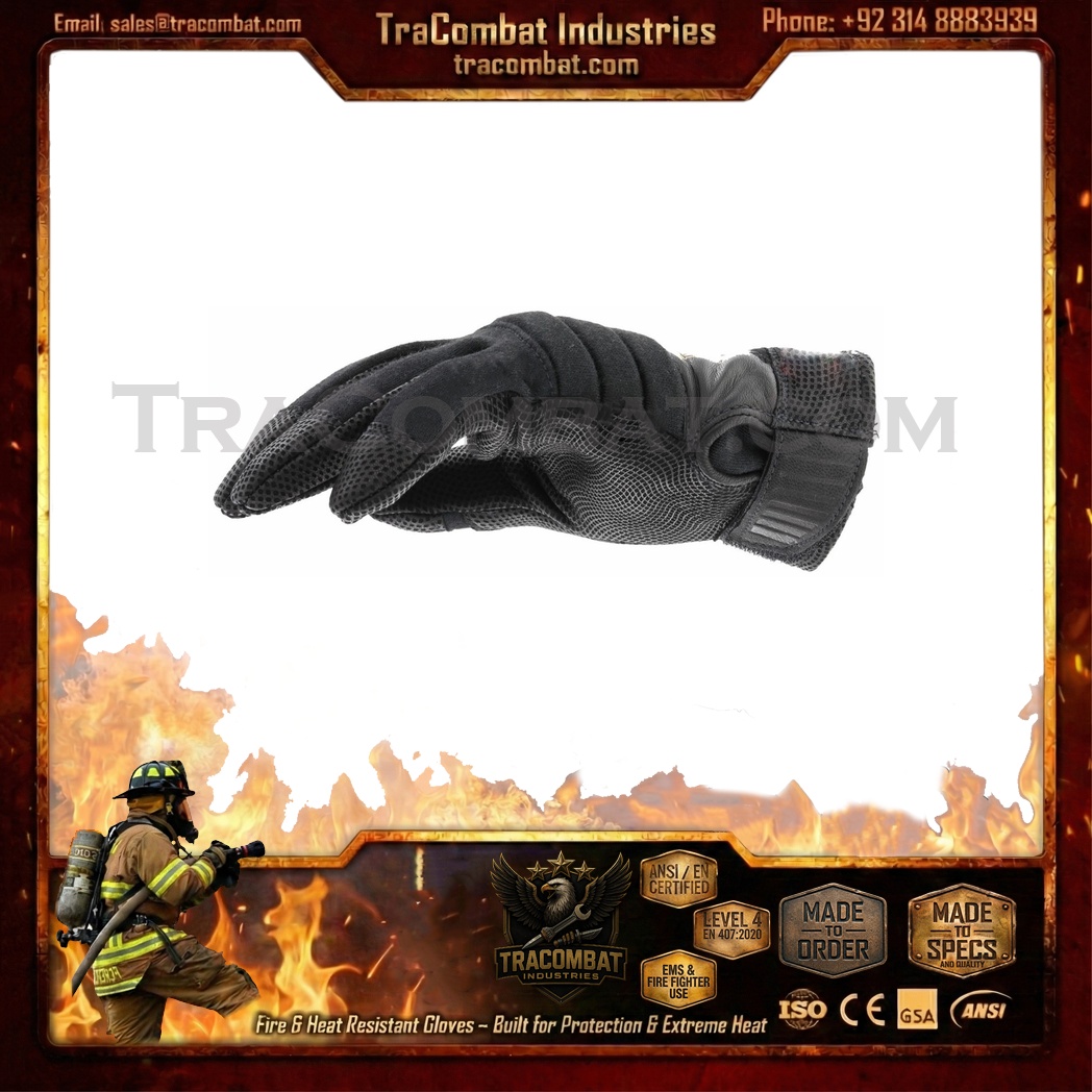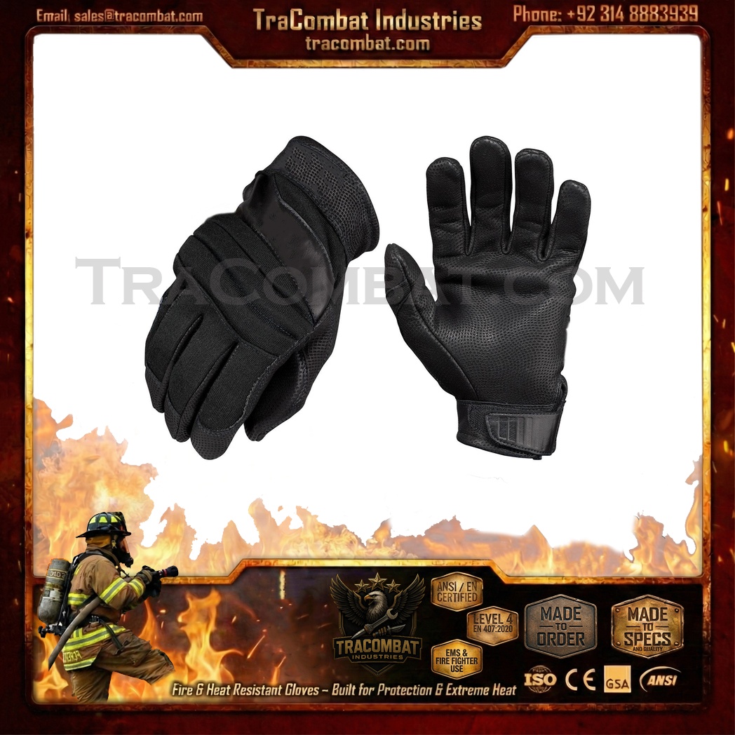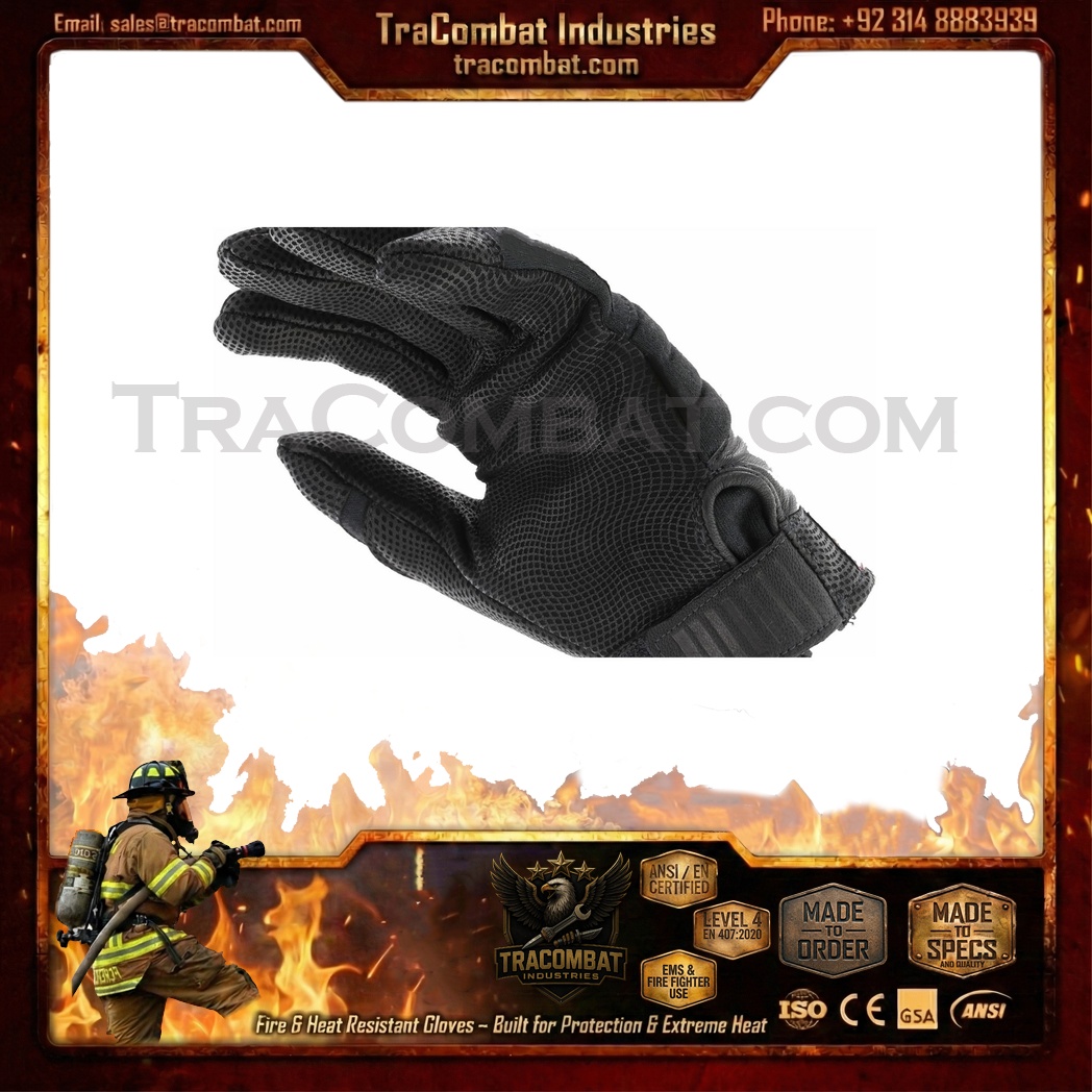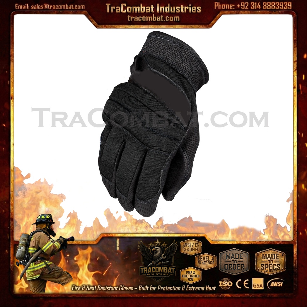 TraCombat CarbonShield Level 5 Fire & Heat Resistant Tactical Gloves are built for professionals operating in extreme temperature environments where flame exposure, thermal stress, and impact risks are everyday challenges. These gloves feature a layered heat and flame defense system that shelters the back of the hand with advanced protective materials, while the genuine leather palm delivers rugged abrasion resistance and secure handling under demanding conditions.
