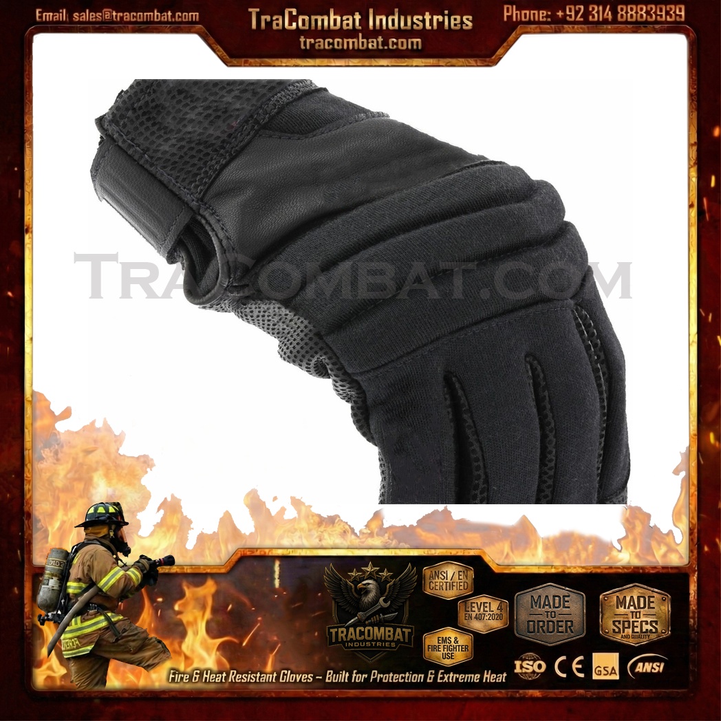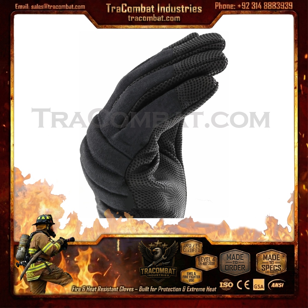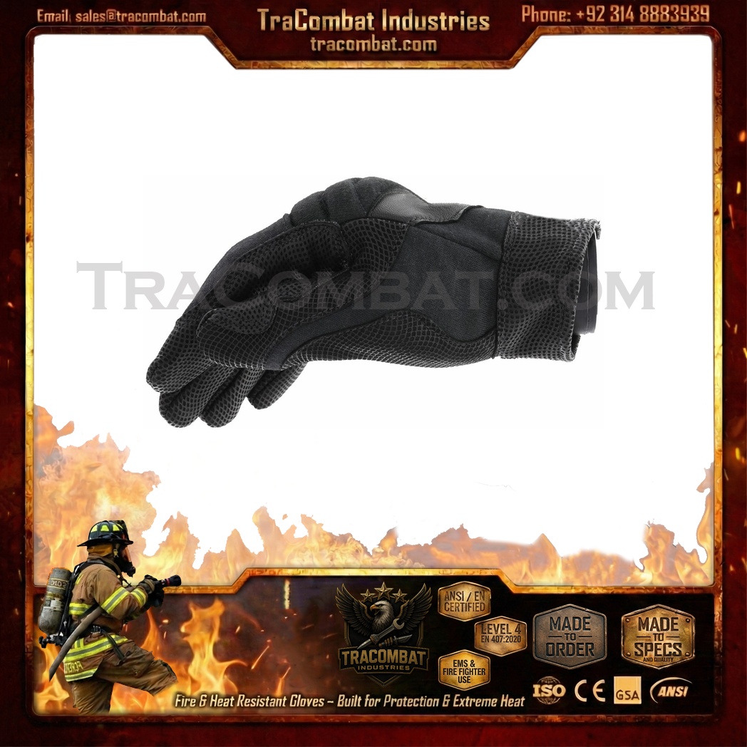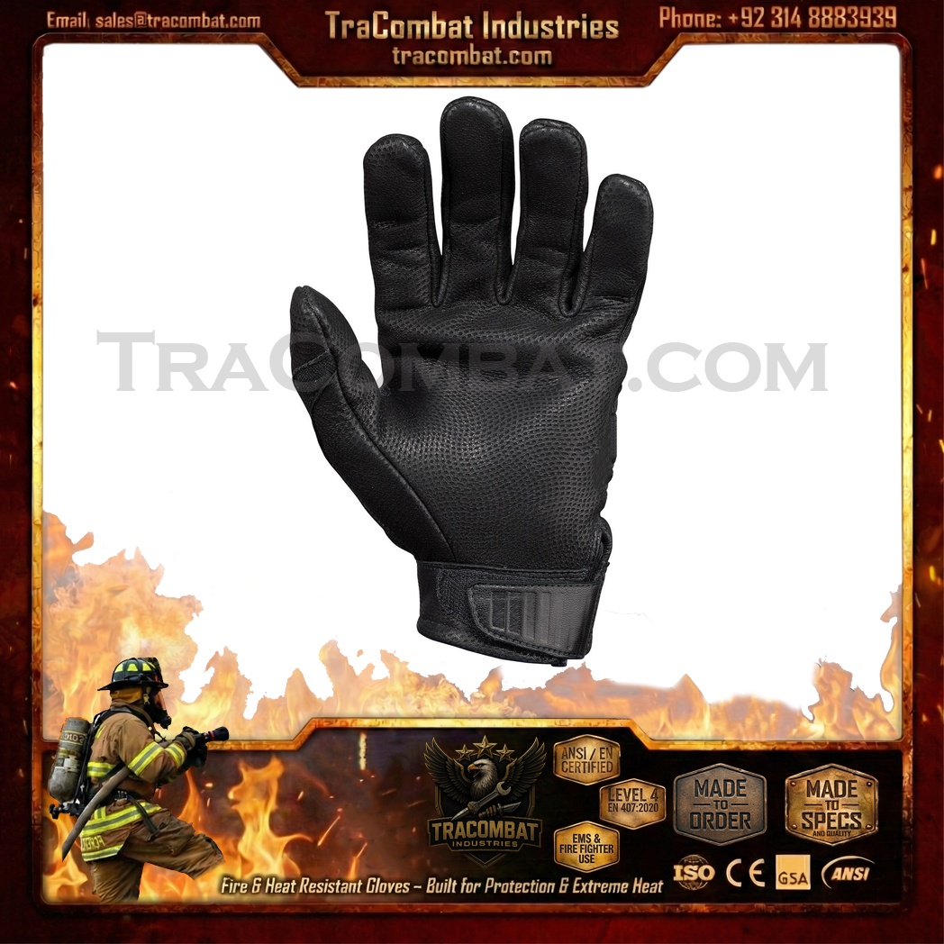 TraCombat CarbonShield Level 5 Fire & Heat Resistant Tactical Gloves are built for professionals operating in extreme temperature environments where flame exposure, thermal stress, and impact risks are everyday challenges. These gloves feature a layered heat and flame defense system that shelters the back of the hand with advanced protective materials, while the genuine leather palm delivers rugged abrasion resistance and secure handling under demanding conditions.