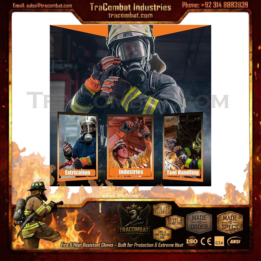 Ideal for fire suppression, rescue operations, emergency response, and tactical duties in high-temperature environments, TraCombat FireShield Pro Gloves deliver professional-grade protection, comfort, and performance.