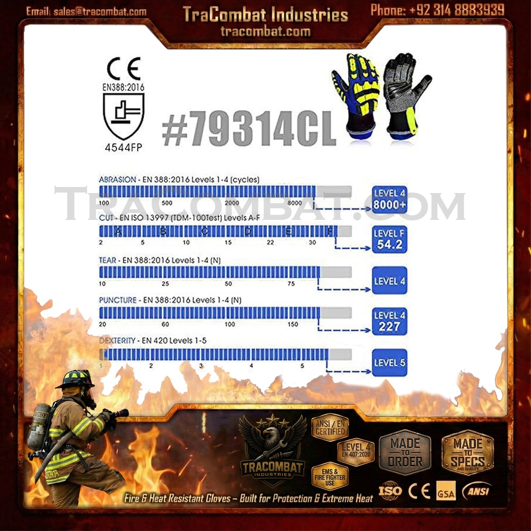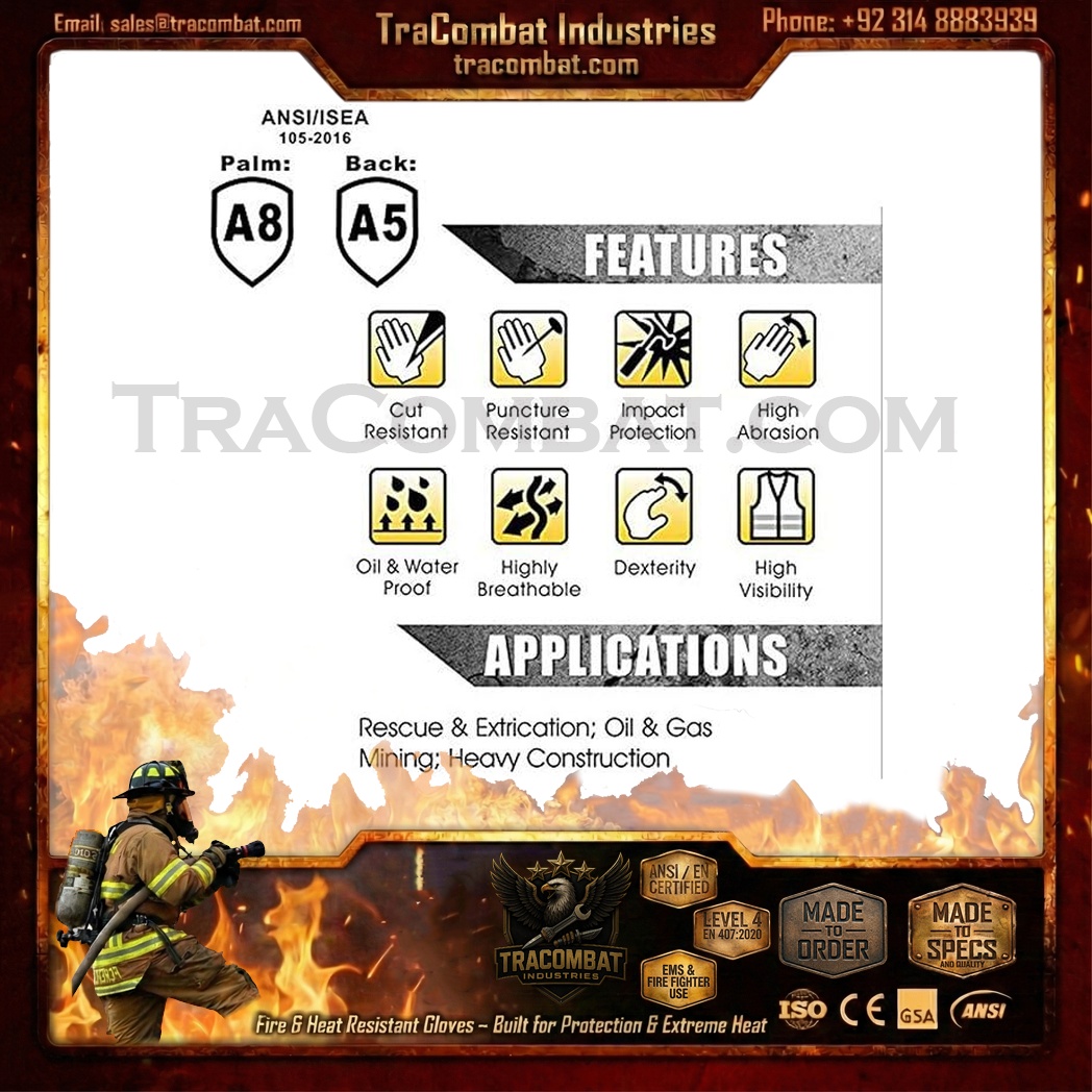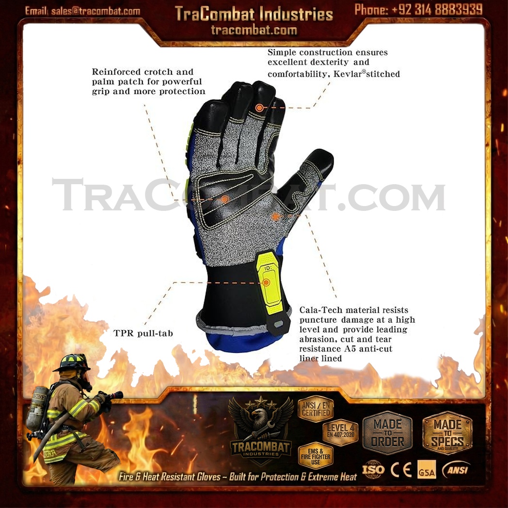 TraCombat Intra-FIT Gloves are engineered for first responders, firefighters, and tactical rescue teams who require professional heat and flame protection without compromising mobility or control. EN407 certified materials safeguard hands from burns, while Kevlar-reinforced panels provide durable abrasion and cut resistance.